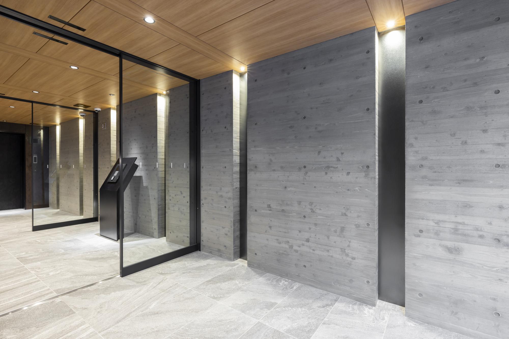 杉の木材をコンクリート枠に使用し、木目が浮き上がるようにしています。